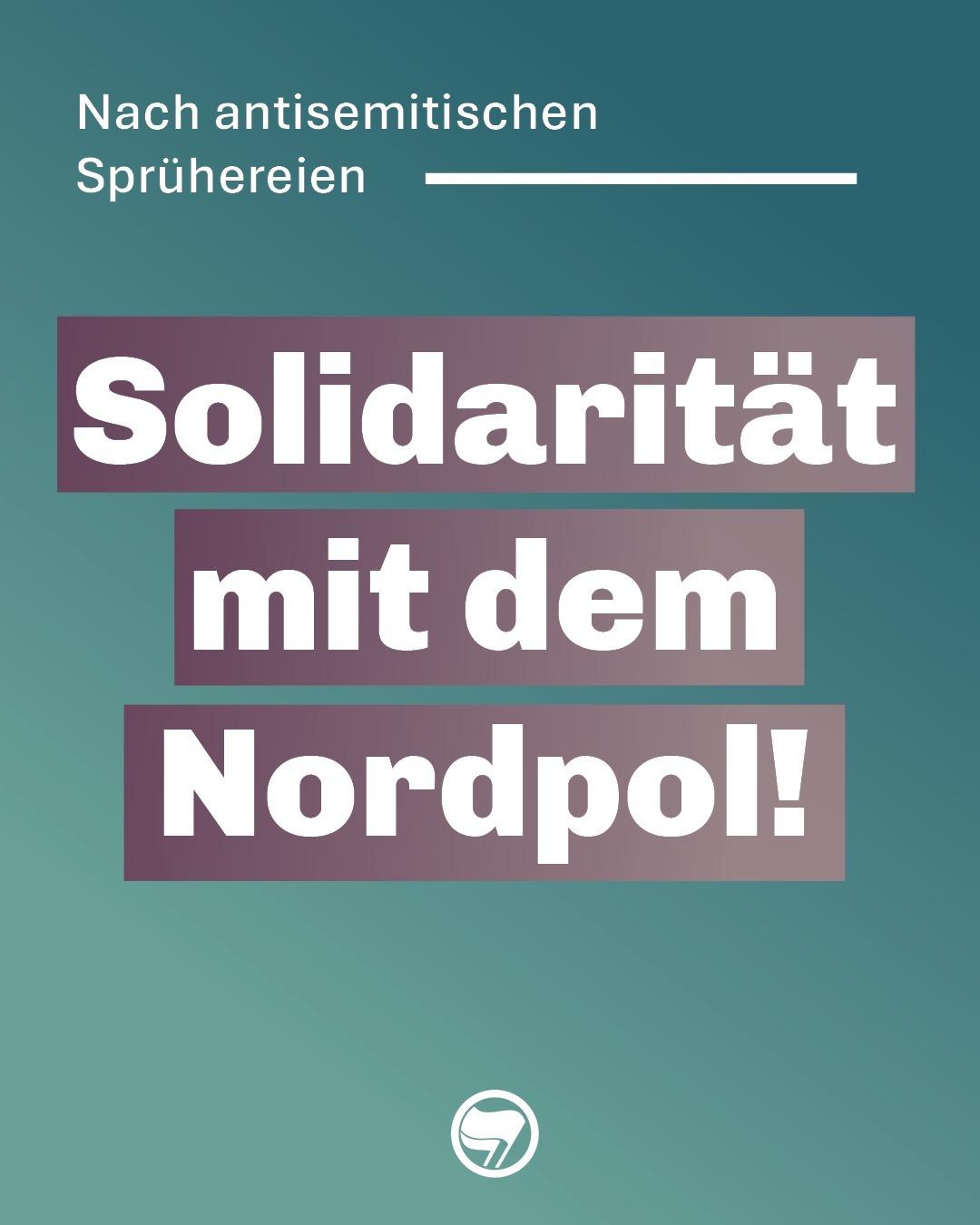 Das werden wir nicht hinnehmen. Wer linke und antifaschistische Räume mit Symbolen islamistischer Organisationen sowie rechten Codes beschmiert, verabschiedet sich damit aus jeder emanzipatorischen Bewegung. Ein Schweigen dazu darf es nicht geben. Unsere uneingeschränkte Solidarität gilt dem Nordpol – und allen Menschen und Kollektiven, die sich konsequent gegen Antisemitismus stellen.