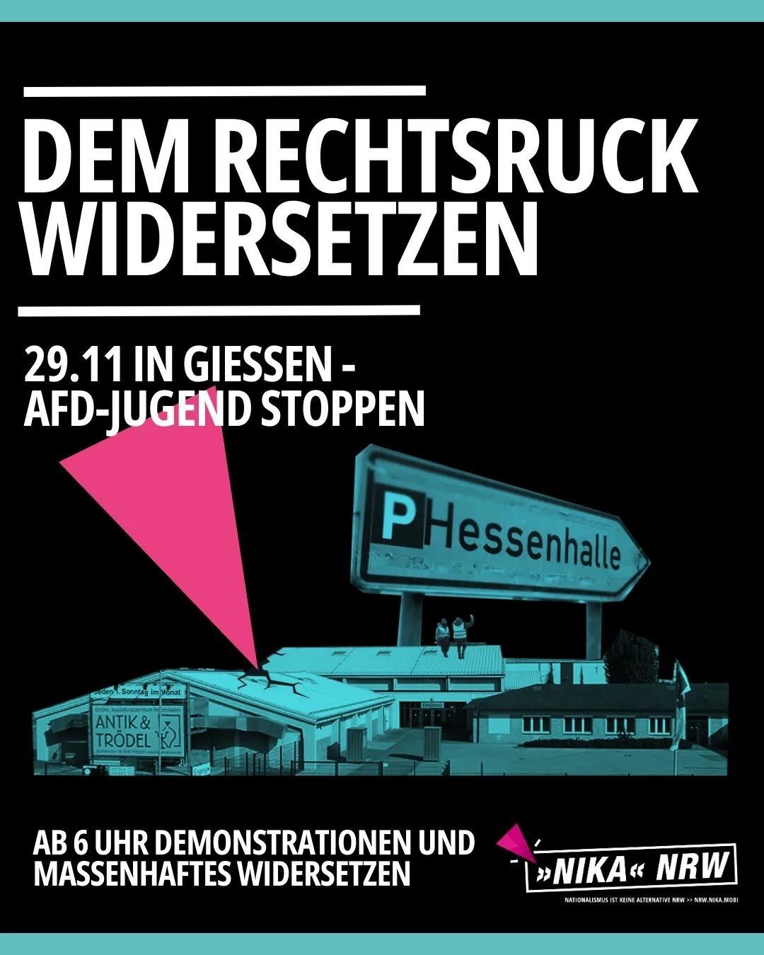 Es bleibt also weiterhin uns überlassen, dem rechten Comeback die Stirn zu bieten. Die nächste Gelegenheit dazu bieten die Proteste gegen den Gründungskongress der AfD-Jugend in Gießen: Das Aktionsbündnis „Widersetzen“ organisiert, wie bereits bei den Bundesparteitagen der AfD in Essen (2024) und Riesa (2025), massenhaften Protest. Ab den frühen Morgenstunden wird es Aktionen Zivilen Ungehorsams geben.